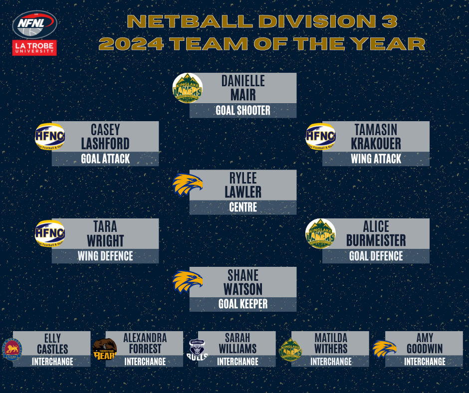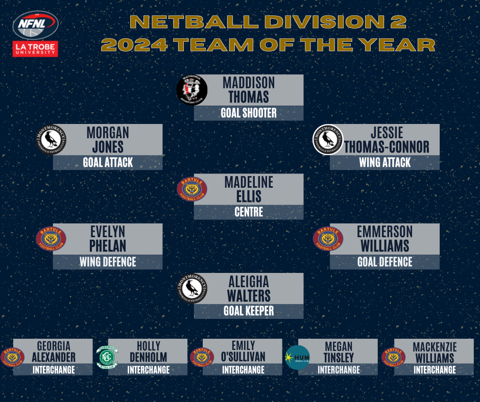 Netball Team of the Year 2025 2025 DIVISION 1 TEAM OF THE YEAR 2025 DIVISION 2 TEAM OF THE YEAR 2025 DIVISION 2 TEAM OF THE YEAR 2024 2024 DIVISION 1 TEAM OF THE YEAR 2024 DIVISION 2 TEAM OF THE YEAR 2024 DIVISION 3 TEAM OF THE YEAR 2023 2023 DIVISION 1 TEAM OF THE YEAR 2023 DIVISION 2 TEAM OF THE YEAR 2023 DIVISION 3 TEAM OF THE YEAR 2022 2022 DIVISION 1 TEAM OF THE YEAR 2022 DIVISION 2 TEAM OF THE YEAR 2022 DIVISION 3 TEAM OF THE YEAR 2021 2021 DIVISION 1 TEAM OF THE YEAR 2021 DIVISION 2 TEAM OF THE YEAR 2021 DIVISION 3 TEAM OF THE YEAR 2019 2019 DIVISION 1 TEAM OF THE YEAR 2019 DIVISION 2 TEAM OF THE YEAR 2019 DIVISION 3 TEAM OF THE YEAR 2018 2018 DIVISION 1 TEAM OF THE YEAR 2018 DIVISION 2 TEAM OF THE YEAR 2018 DIVISION 3 TEAM OF THE YEAR 2017 2017 DIVISION 1 TEAM OF THE YEAR 2017 DIVISION 2 TEAM OF THE YEAR 2017 DIVISION 3 TEAM OF THE YEAR